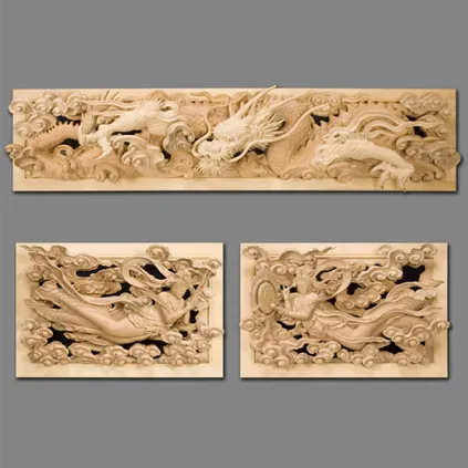 井波彫刻の技を使ったオリジナル商品(OEM)の制作や、1点ものの作品制作から、欠損した彫刻の修復、失われてしまった彫刻の復元など、さまざまなご依頼に対応しております。井波彫刻協同組合に所属する熟練した職人集団から、最適なチームを組み制作に当たります。